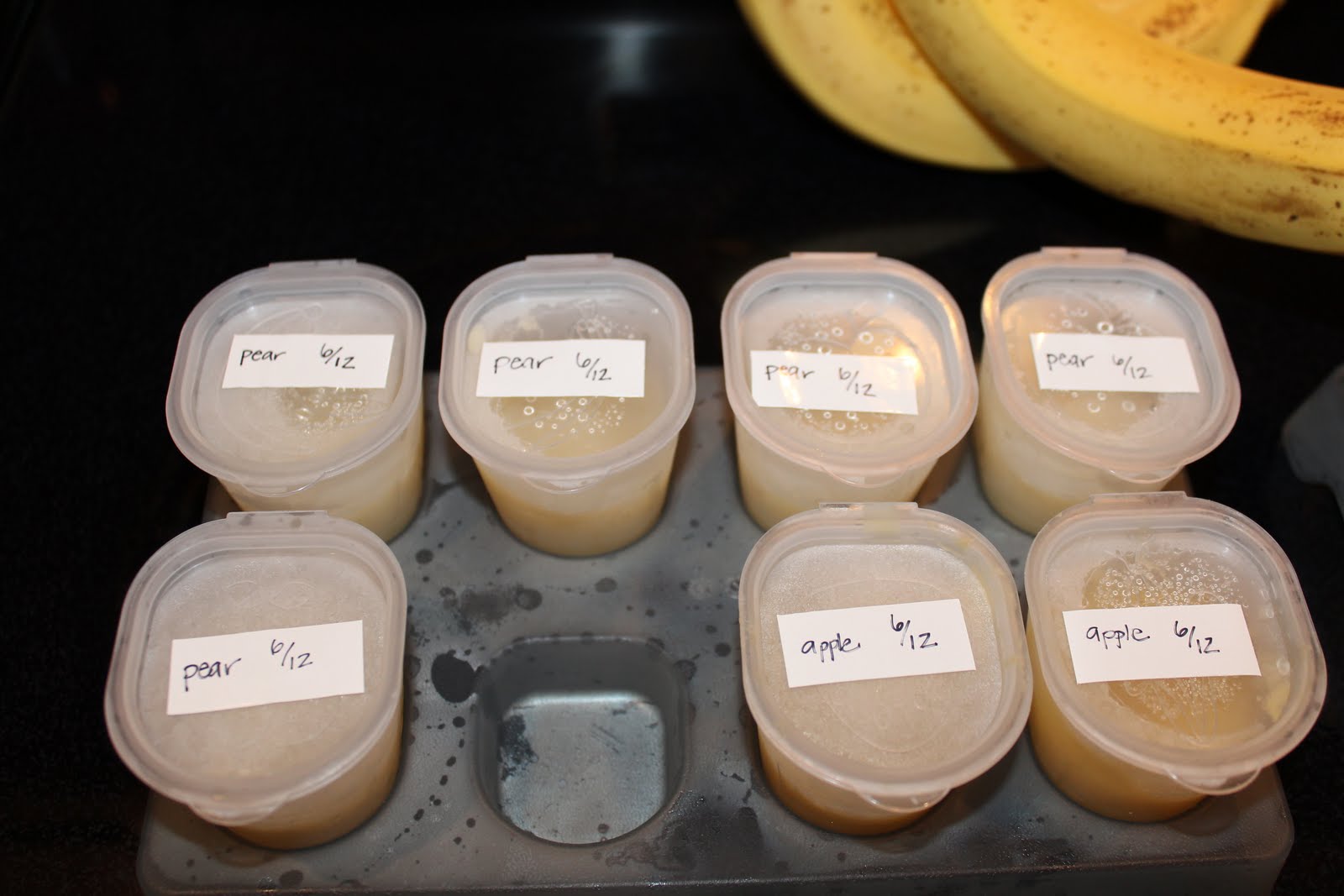 I love your cute containers! I fed Rad all jarred baby food, but Ace had about 90% homemade baby foods. I thought it was fun to make, and I'd make big batches to cut down on prep days. I just froze mine in ice cube trays and stored the cubes in Ziploc freezer bags. That worked pretty well.